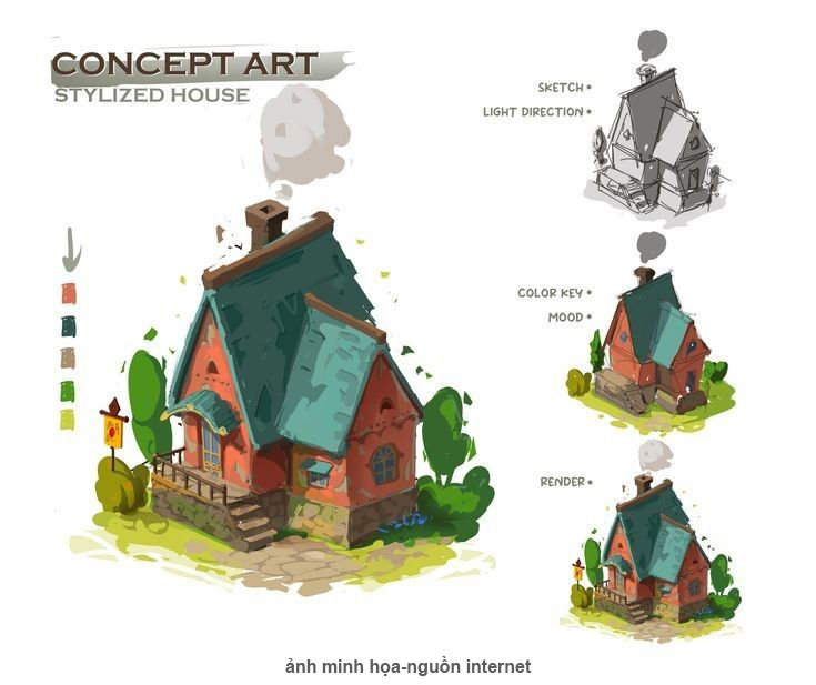 Concept art là hình ảnh minh họa giúp truyền tải ý tưởng ban đầu của nhân vật, vật thể hoặc môi trường trước khi bước vào quy trình dựng hình 3D.