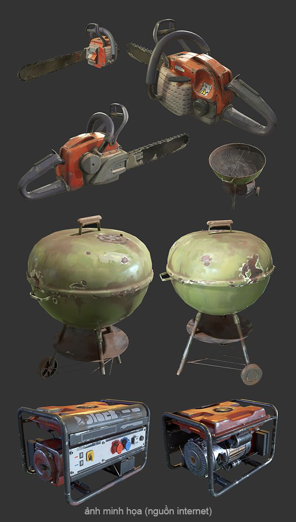 _ Vẽ chất liệu và màu sắc bằng phần mềm như Substance Painter hoặc Photoshop.